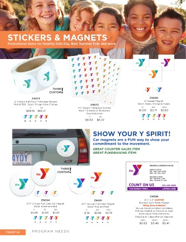 2” Circular Full-Color Y-Branded Stickers 2” Square Magnet