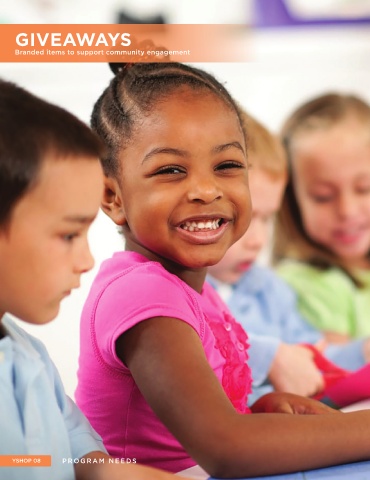 GIVEAWAYS Branded items to support community engagement YSHOP 08 PROGRAM NEED S