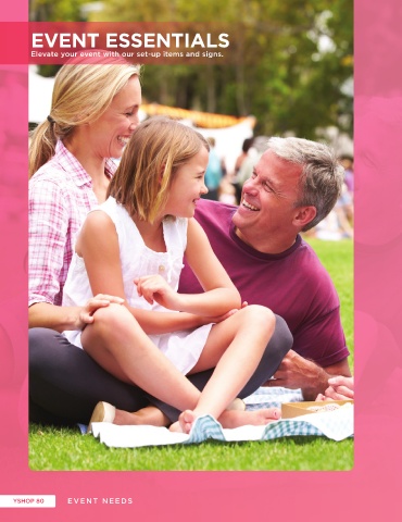 EVENT ESSENTIALS Elevate your event with our set-up items and signs. YSHOP 80 EVENT NEEDS